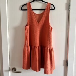 Free People Tank Mini Dress Orange Round Neck Textured Pullover Sleeveless Sz S