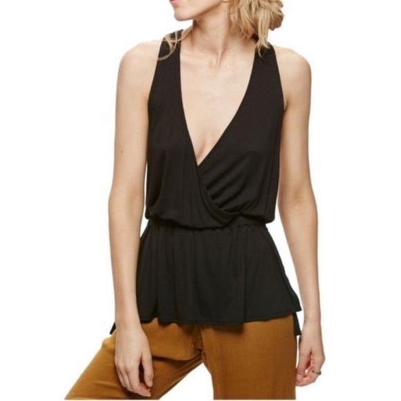 Free People Tank Top • We the Free Black Heat Wave Peplum Surplice Sleeveless