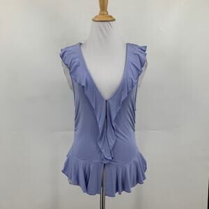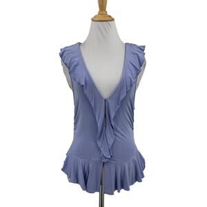 Free People Tank Top Womens Medium Periwinkle Ruffle Me Away V Neck Ruched Sides