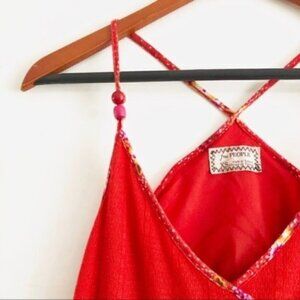 Free People Tank Top XS Orange Crepe Bohemian Floral Summer Beach Boho Cali