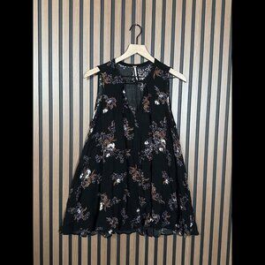 Free People Tank Top XS Women Black Floral Tunic Sleeveless Blouse Triangle Hole