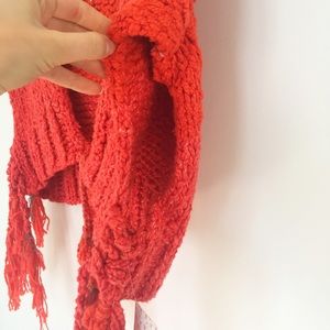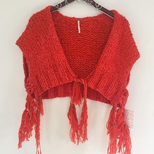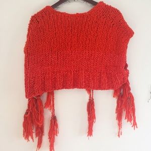 NWT and in excellent condition, no flaws at all! First picture is the Sweater but in ombré the ones for sale are not ombré. Have both side Small and Medium available. Color is called Red but it's more of a burnt orange color. Open front shrug with tassels all around. Oversized comfortable look. Small 17" long 29" with fringe and 20" bust. Medium 17" long 28" with fringe and 24" bust. No trades, offers welcome