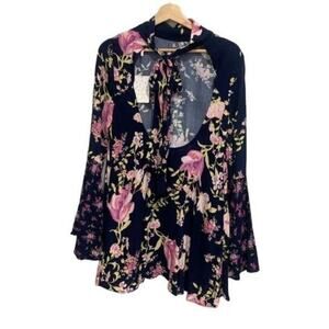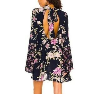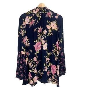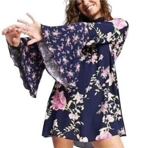 Free People Tate Floral Bell Sleeve Mini Dress Midnight Combo Women's Size Small