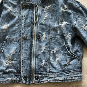 Free People Tattered Distressed Tennis Bomber Jean Jacket Indigo - Women’s Small