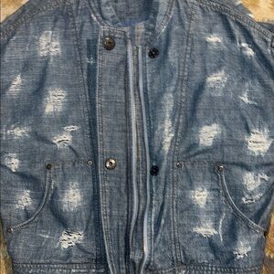 Free People Tattered Tennis Bomber denim jacket. Size M