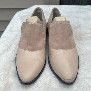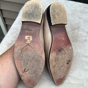 Chic taupe loafers with a sleek design. Ideal for casual elegance. See photos for wear.
