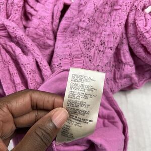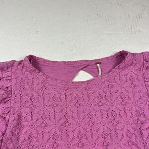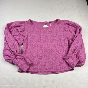 Free People Tea Time Blouse Pink Lace Open Back Boho Romantic Puff Sleeve Large