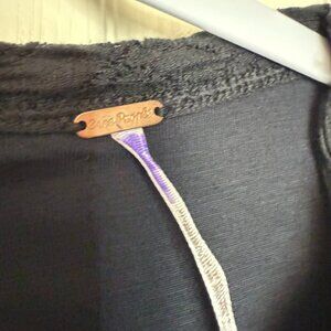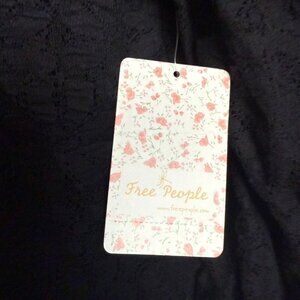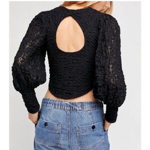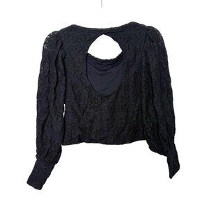 Free People Tea Time Blouse Women M Black Lace Open Back Puffed Sleeves Boho NWT