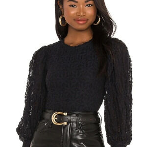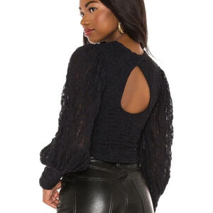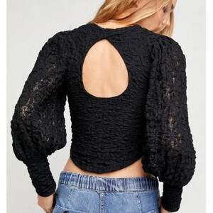 Keep your look effortlessly feminine in this textured top enhanced by puffed shoulders and a cutout back detail for a hint of skin.