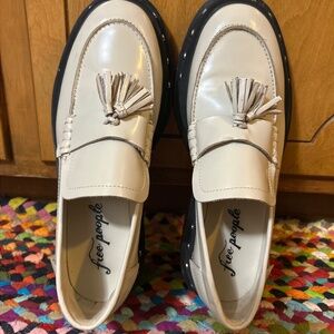 Free People Teagan Women's Tassel Loafer Ivory Leather Studded Lug 90's Size 11