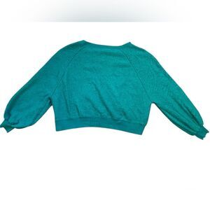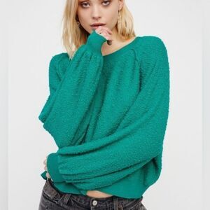 Free People Teal Boucle Cotton Blend Found My Friend Pullover Sweatshirt