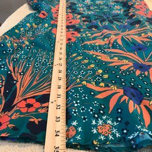 Vibrant teal mini dress with floral pattern. Features short sleeves and a relaxed fit. Perfect for casual outings.