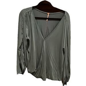 Free People Teal Long Sleeve Blouse size Medium Vneck