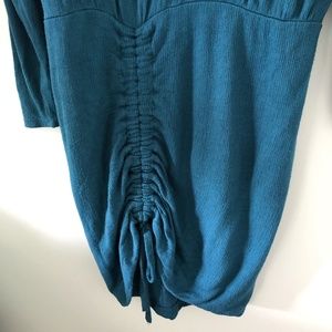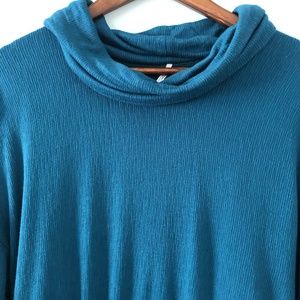 Free People Teal Turtleneck Long Sleeve Rouched Dress