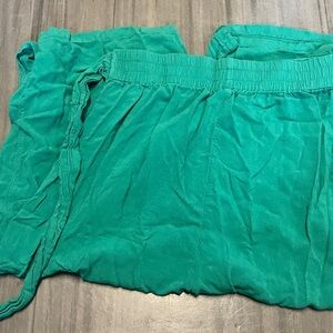 Stylish teal wide-leg pants with a tie waist. Perfect for casual outings. Free people, women size, medium lightweight, green, straight legs, high waisted, flow pants.