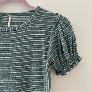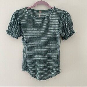 Free People Teal and White Striped Top Blouse with Ruffle Sleeves Size Small