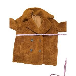 Free People Teddy Fleece Oversized Double Breasted Sherpa Jacket Tan Brown