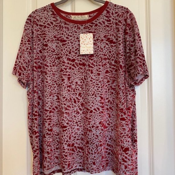 Free People Teddy T- Shirt Oversized Velour Berry/Pink Size XS