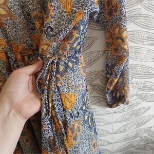 Cinched Waist Mini Dress with a faux wrap V neckline in a size XS by Free People. In excellent condition, see pics. could easily fit a size small as well.