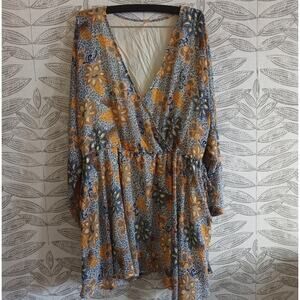 Free People Teegan Dress Mini Flowy Floral Boho Asymmetrical Hem V Neck