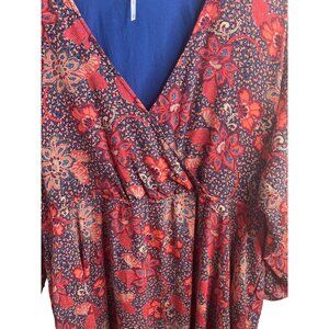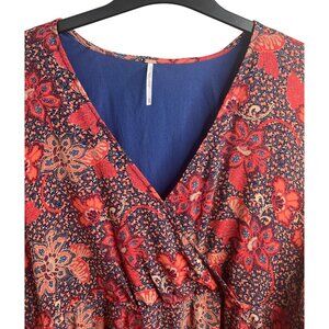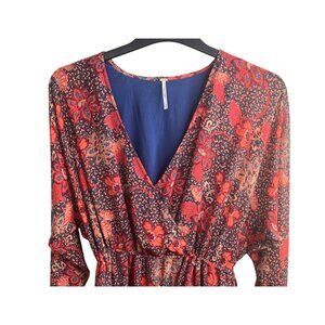 Free People Teegan Floral Print Long Sleeve Wrap Mini Dress Asymmetrical X-Small