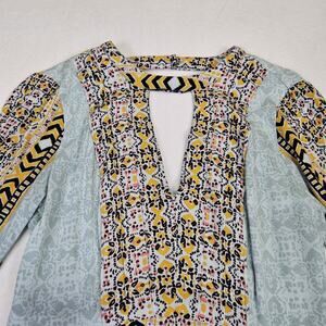 Free People Tegan Border Boho Mini Dress Floral Tunic Flowy Fairy Pockets Blue 4