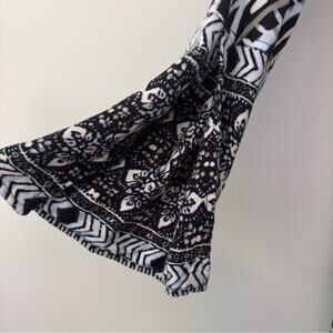 Free People Tegan Border Print Mini Dress Long Bell Sleeves Cutout V-Neck A-Line