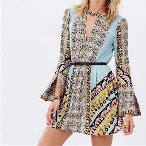 Free People Tegan Border Printed Mini Dress In Blue Combo Size 0 in great condition!