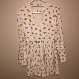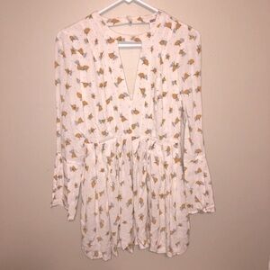 Free People Tegan Ivory Bohemian Keyhole Neck Floral Mini Dress
