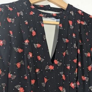 Free People Tegan Mini Dress Black Poppy Floral Keyhole Choker Bell Long Sleeve