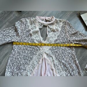 Free People Tell Tale Keyhole Gauzy Eyelash Lace Trapeze Dress in Pearl L