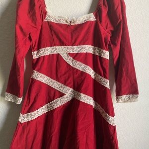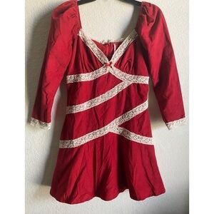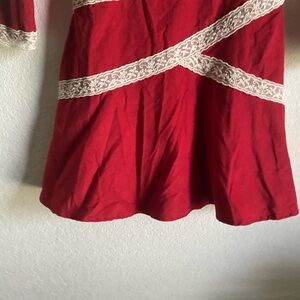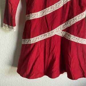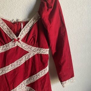 Free People Tennley Red Milkmade Coquette Corduroy Whimsigoth Lace Detail Fairy Mini Boho Dress XS