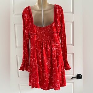 Free People Tess Floral Print Long Sleeve Minidress Velvet M Babydoll Milkmaid