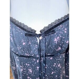 Free People Tess Mini Dress Boho Floral Lace Trim Velvet Tie Long Sleeve Blue L