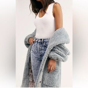 Free People Tessa Teddy Longline Cozy Faux Sherpa Fur Trench Coat size Large