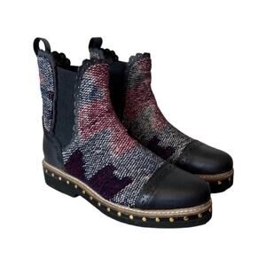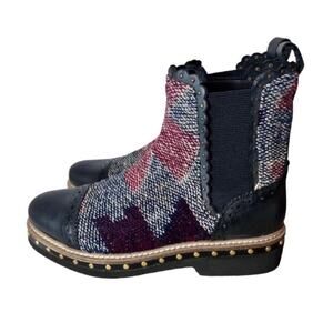 Free People Textile Tapestry Atlas Chelsea Ankle Boots In Navy Size 36 EU