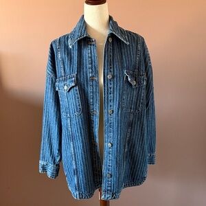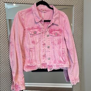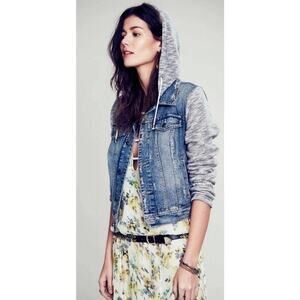 Free People Textured Chevron Blue Denim Jacket