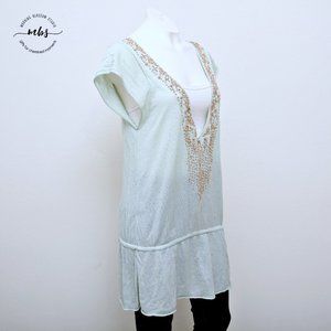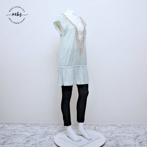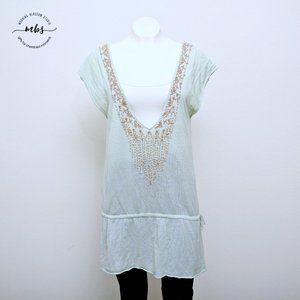 Free People Textured Scoop Neck Short Sleeve Tie Waist Oversized Tunic
