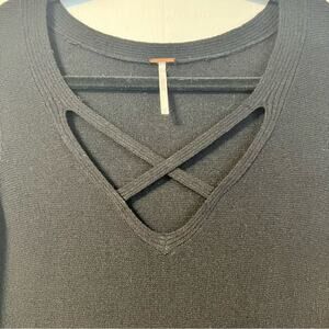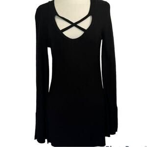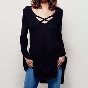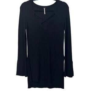 Free People The Andy Crisscross Slit Bell Sleeve Long Lined Black Sweater XS