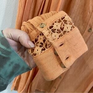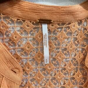 Free People “The Best” Crochet Button Down Blouse in Orange Size Small