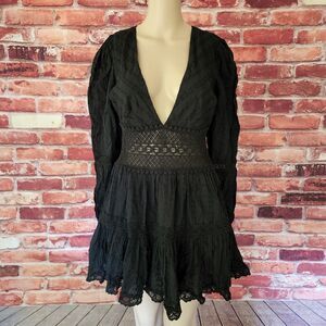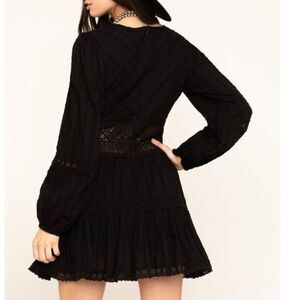 Free People The Delightful Black Long Sleeve Mini Dress Size 4 NWT