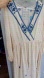 This elegant cream dress features beautiful blue embroidery, perfect for any occasion. Its sophisticated design offers a flattering fit and timeless style.