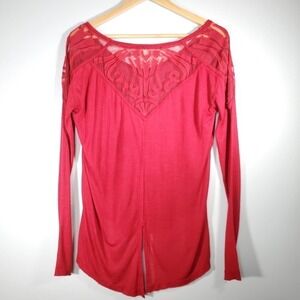 Free People The Gatsby Tee Mesh Yoke Long Sleeve Top Red Size Small