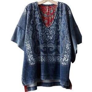 Free People The Originals Indigo Heavyweight Knit Poncho
