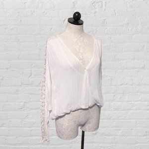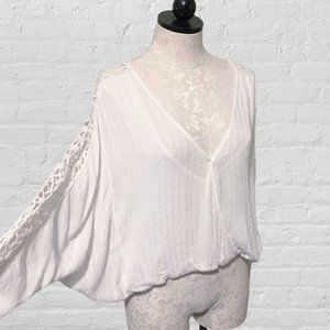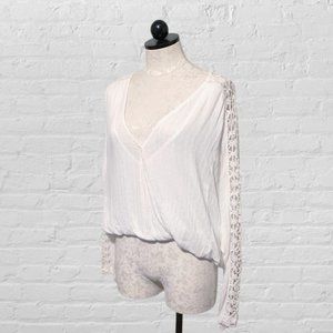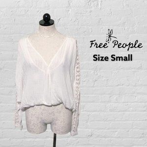 Free People The Runaway Top Lace Sleeves Ivory Size Small