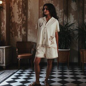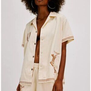 Free People x The Tales Embroidered Cowboy Shirt in Natural - Size XS