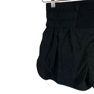Like new Free People Movement High Waist Workout Shorts Size Small in Black. Polyester blend breathable fabric. Split sides for easier movement. Lined. High waist band for compression and stability while moving around. Key compartment in the back.