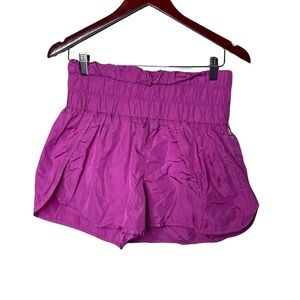 Free People The Way Home Shorts in Foglove magenta sz L Run with confidence in ultralightweight shorts designed with a wide elastic waistband and dolphin hems for comfort and support.