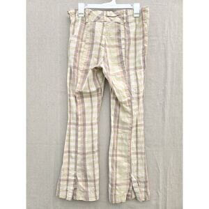 Free People The Way You Move Natural Plaid Linen Pants Edgy 70s Boho Size 12