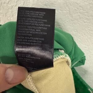 Stylish green vegan pants with a sleek design. Perfect for a bold fashion statement.